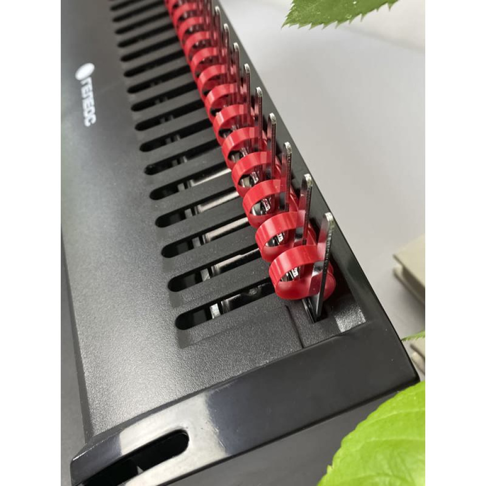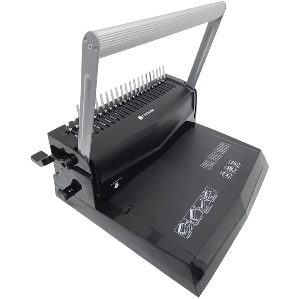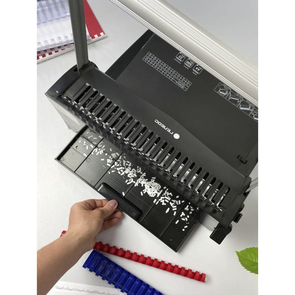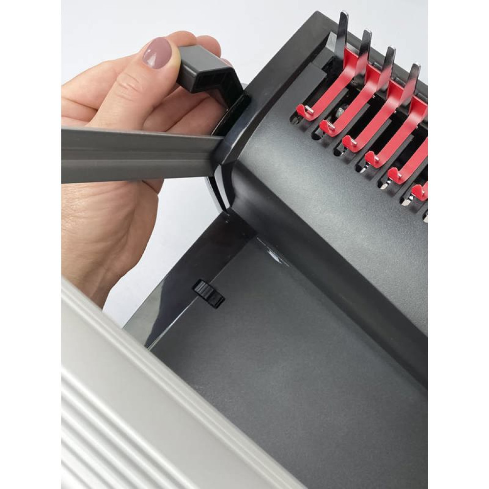Качественный мощный переплетчик на пластиковую пружину подходит для использования дома и в офисе. Позволяет переплетать большие бумажные блоки до 500 листов форматов А4 и меньше. Блок, оформленный на пластиковую пружину можно легко раскрывать на любой градус, исправить и дополнить.Удобная П-образная ручка для перфорации, позволяет браться с любой стороны.Регулировка глубины перфорации может переплетать как малые (до 100 листов), так и большие объемы бумажных блоков (до 500 листов). Также для удобства перфорации листов имеется ограничитель для бумаги формата А4 и А5.