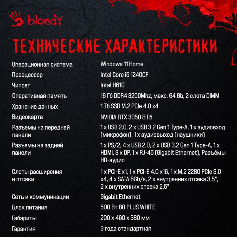 ПК Bloody BD-PC CH61C1 MT i5 12400F (2.5) 16Gb SSD1Tb RTX3050 8Gb Windows 11 Home 64 GbitEth 500W черный (2085725)