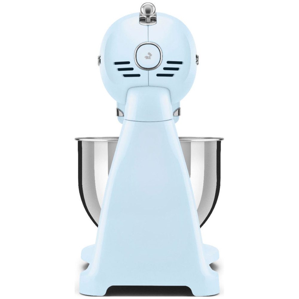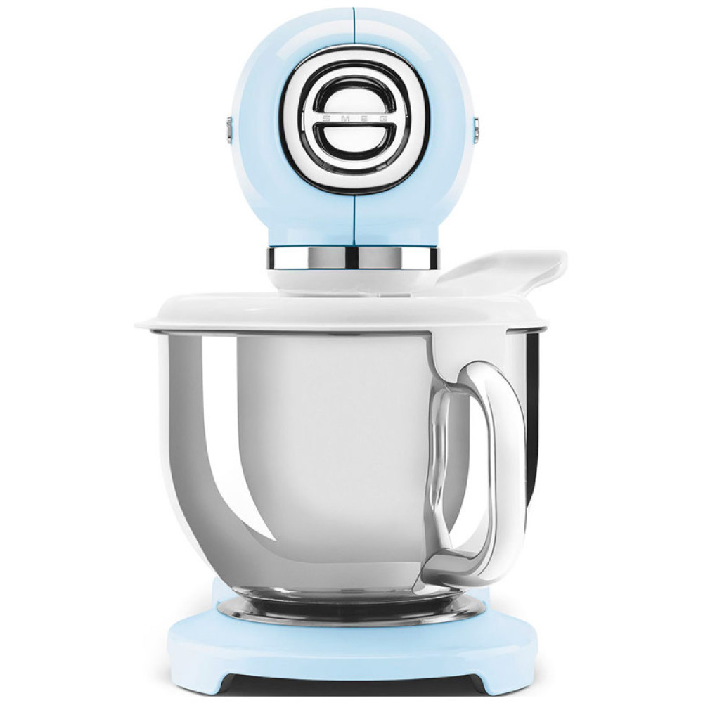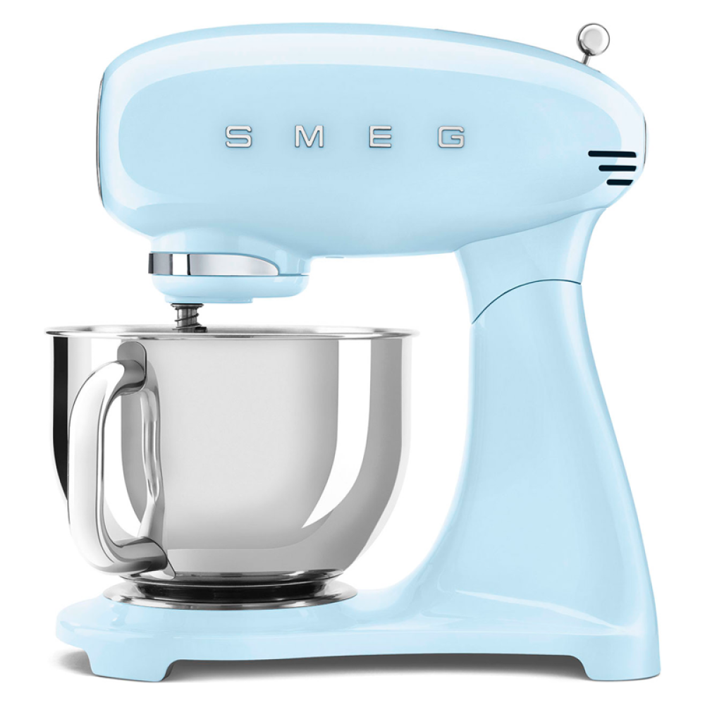 Планетарный миксер Smeg SMF03PBEU оптимален для взбивания яичных белков и сливок, приготовления соусов и кремов, детских пюре. В зависимости от решаемой задачи можно выбрать одну из 10 скоростей для эффективной обработки. Благодаря планетарной технологии с разнонаправленным движением насадки и привода обеспечиваются полный охват смеси в чаше и равномерное перемешивание ингредиентов. С помощью специального крюка можно готовить тесто, а венчики и плоская лопатка позволяют создавать кремы и муссы, фруктовые шейки.За счет плавного пуска Smooth Start устройство начинает работу на низкой скорости вне зависимости от выбранного режима, что предотвращает разбрызгивание смеси, повреждение насадок. Чаша произведена из качественной нержавеющей стали, которая не подвержена возникновению коррозии. Крепкая ручка эргономичной формы позволяет удобно устанавливать и снимать емкость. Планетарный миксер Smeg SMF03PBEU имеет прорезиненные ножки. Это препятствует скольжению устройства на горизонтальной поверхности в процессе работы. Корпус модели изготовлен из литого алюминия, устойчивого к внешнему воздействию, образованию повреждений.