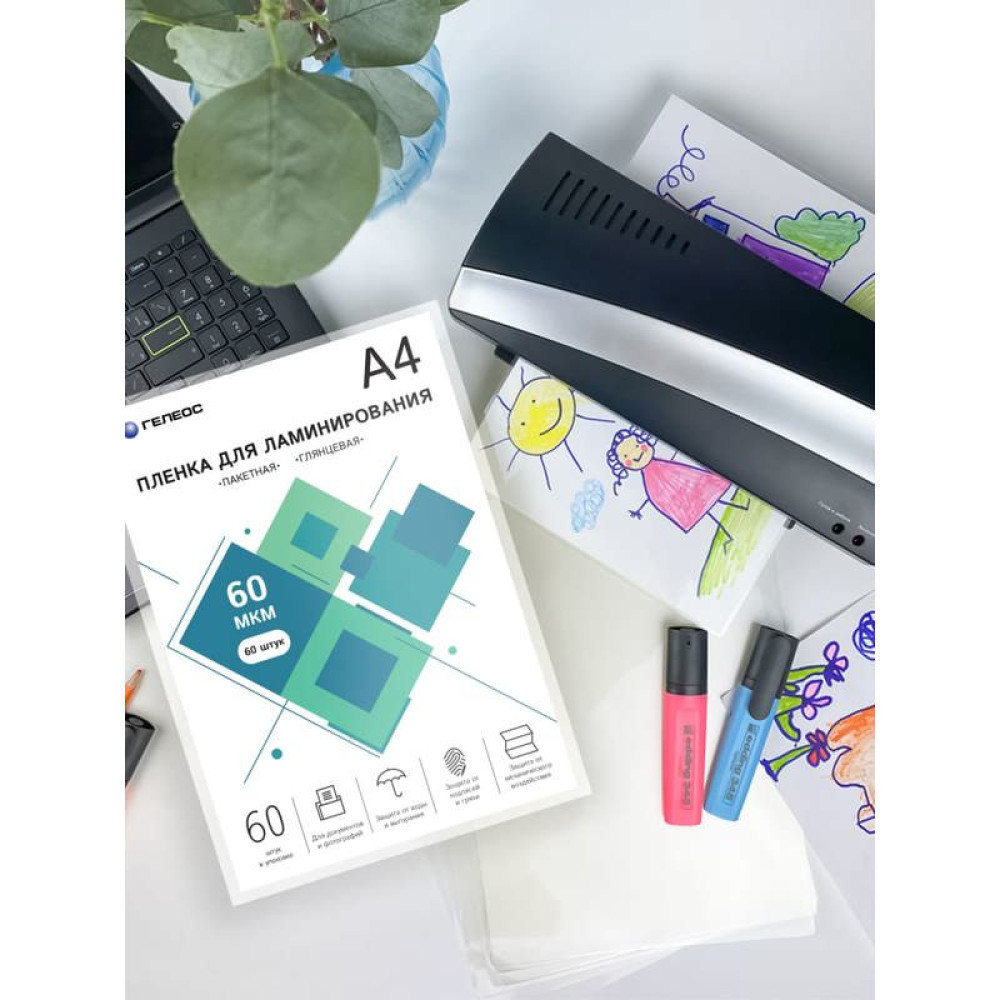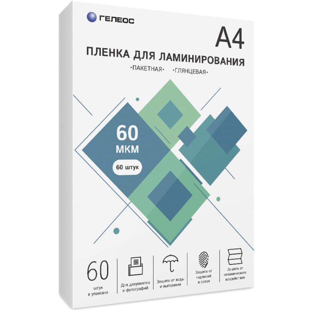 Пленка для ламинирования A4, 216х303 (60 мкм) глянцевая 60шт, ГЕЛЕОС [LPA4-60-60]