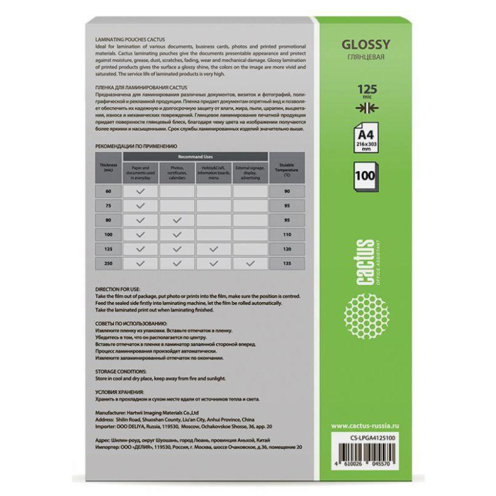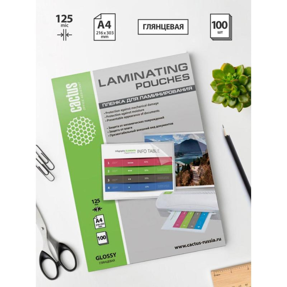 Пленка для ламинирования Cactus 125мкм A4 (100шт) глянцевая 216x303мм CS-LPGA4125100