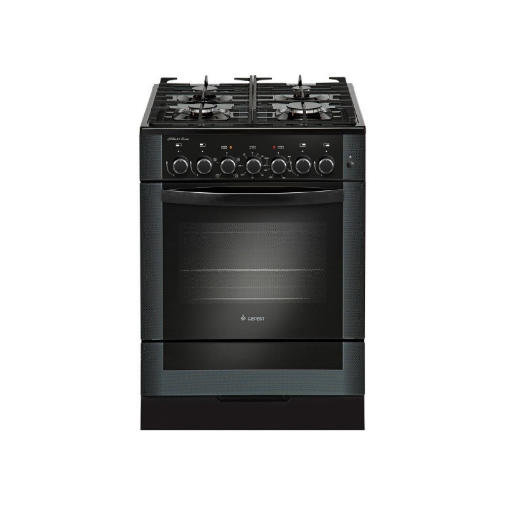 Комбинированная плита с газовыми конфорками и электрической духовкой, в черном цвете, ширина 60 см. Оснащена световой индикацией включения нагрева и электромеханическим таймером со звуковым сигналом. Классический дизайн выглядит современно, фасад и рабочая поверхность - стеклянные. Варочная поверхность с 4 газовыми горелками оборудована электроподжигом, розжиг происходит при нажатии на кнопку на панели управления. Конфорки надежно защищены чугунными составными решетками. Духовой шкаф работает в нескольких режимах: классический нагрев с регулировкой и поддержанием температуры (термостат), электрический гриль включается отдельно. Для удобства использования, вертел и направляющие для противней выполнены съемными.Ключевые преимущества:- Чугунные решетки - Электророзжиг горелок стола- Таймер электромеханический- Гриль электрический- Вертел с электроприводом- Подсветка духовки- Съемные проволочные направляющие духовки- Выдвижной ящик для посуды и принадлежностей- Ножки регулировочные