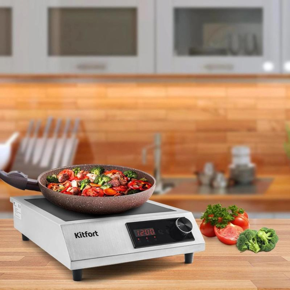 Плита Индукционная Kitfort КТ-142 серебристый/черный стеклокерамика (настольная)