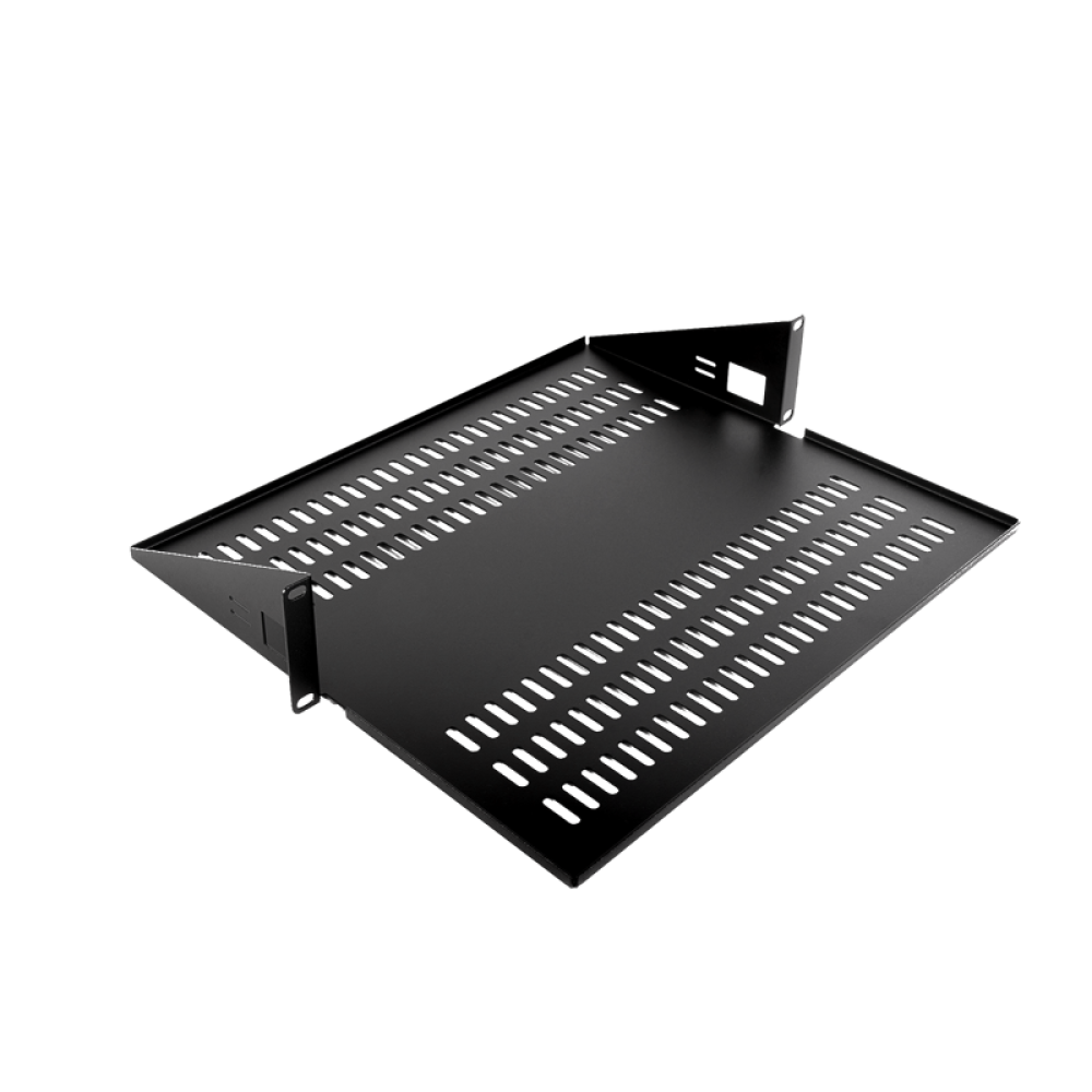 Полка для стойки перфорированная консольная 2U с центральным креплением, глубина 400 мм, цвет черный