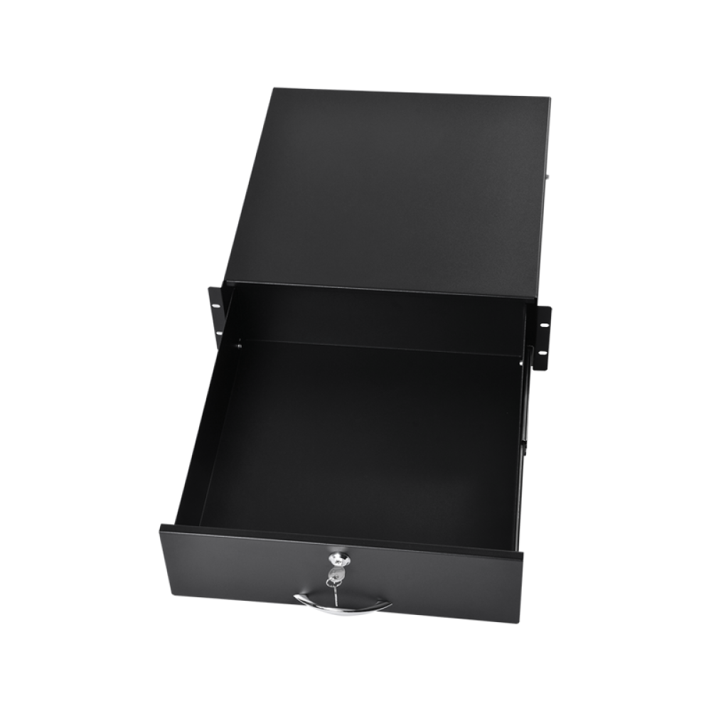 Ящик для документации предназначен для хранения сопроводительной документации установленного оборудования. На передней панели установлена ручка и замок, ящик имеет телескопические направляющие. Устанавливается на вертикальные направляющие в телекоммуникационные шкафы и стойки. Поставляется собранным, в индивидуальной упаковке с комплектом крепления. Используется во всех сериях телекоммуникационных шкафов. Изделие выполнено в системе несущих конструкций 482,6 мм по ГОСТ 28601.2 (19-дюймовые конструктивы по МЭК 297).