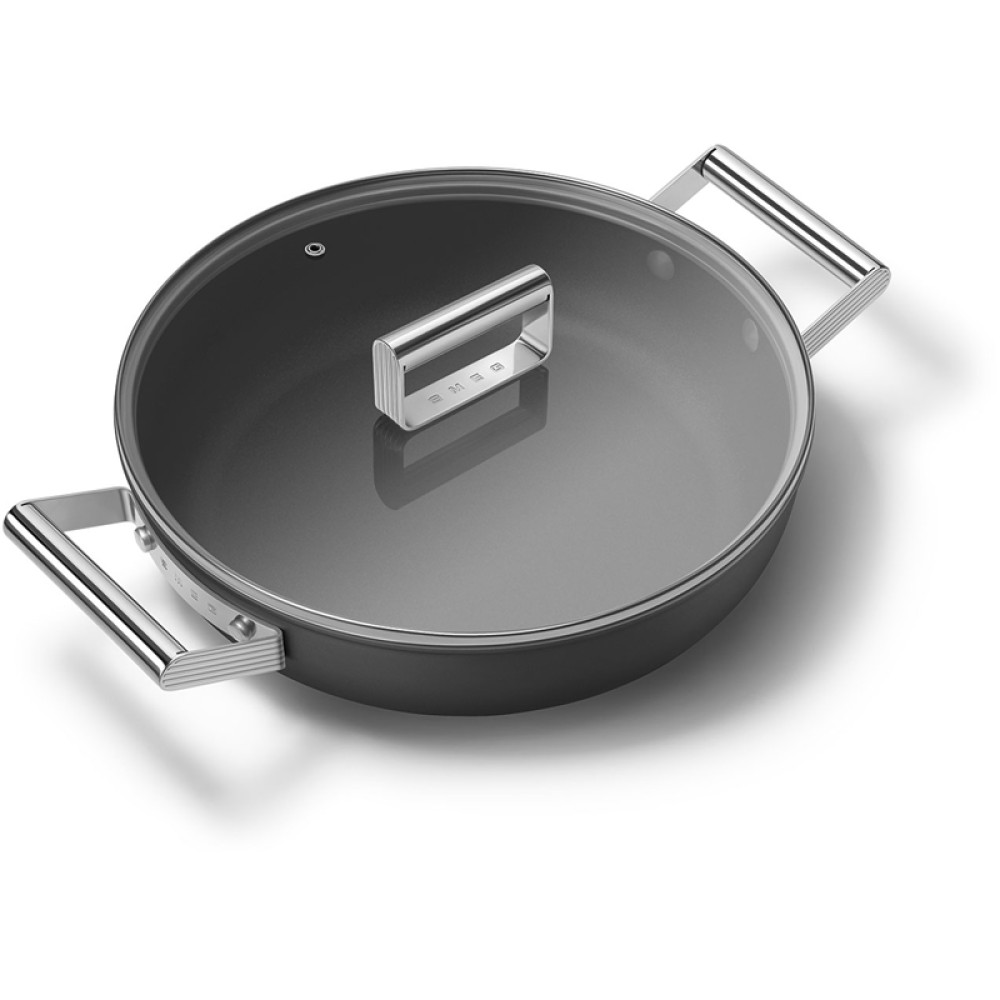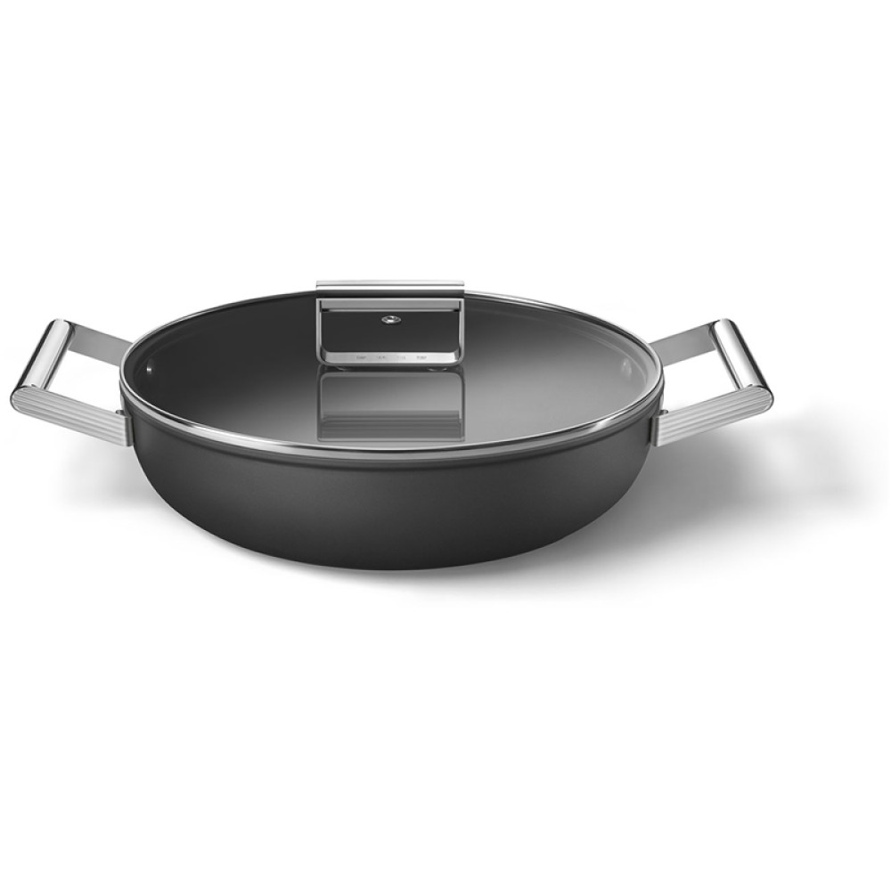 Посуда SMEG/ Глубокая сковорода с двумя ручками и крышкой, 28 см, черная