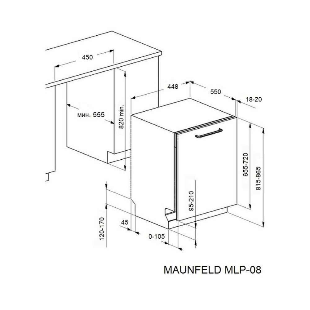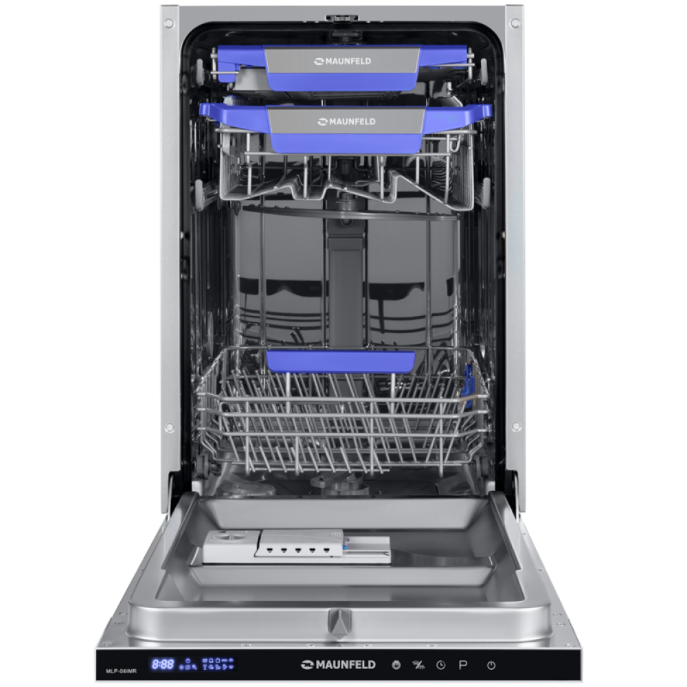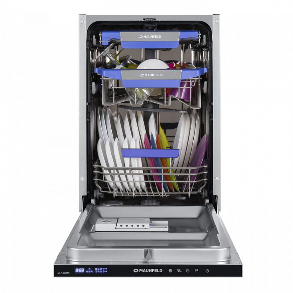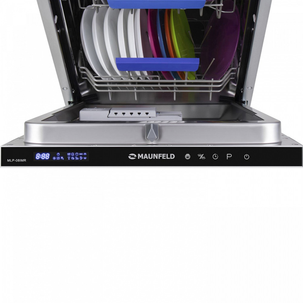 Посудомоечная бытовая машина MAUNFELD/ Посудомоечная бытовая машина MAUNFELD MLP-08IMR Узкая, Встраиваемая ПММ 45см, 10 комплектов, 9 программ, сенсорное управление с LED индикацией, 3 корзины, съемная корзина для столовых приборов, полноценный AQUA-STOP
