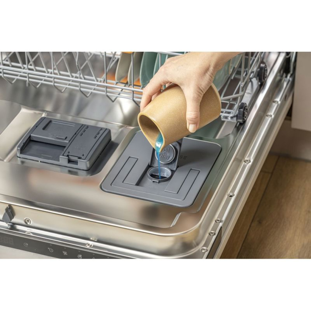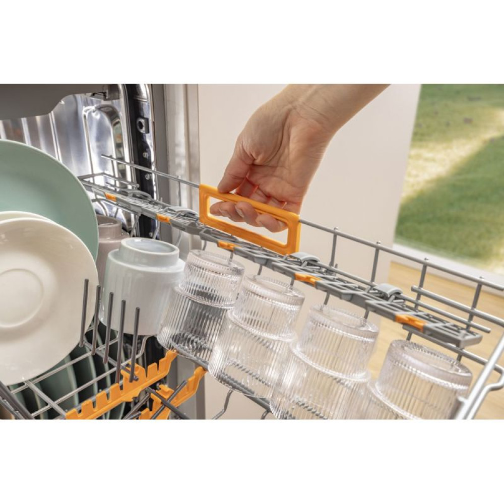 Посудомоечная машина оснащена функцией отсрочки старта, что позволяет вам планировать цикл мойки в удобное время. Благодаря Wi-Fi управлению, вы можете контролировать процесс мойки прямо со своего смартфона, что добавляет удобства в повседневное использование. Сенсорное управление делает процесс настройки простым и интуитивно понятным, позволяя легко выбирать нужные программы и режимы.