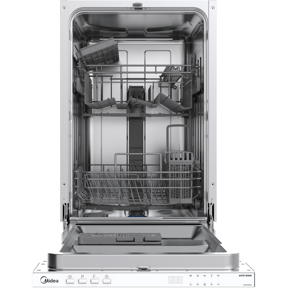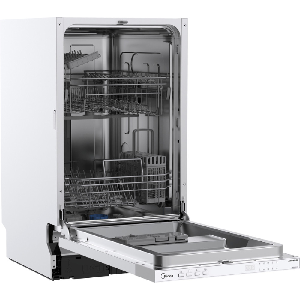 Посудомоечная машина Midea/ Посудомоечная машина Midea, 45 см, 9 комплектов, 2 корзины, дисплей, кнопочное управление, 5 программ, Extra Drying, отсрочка запуска 1-24 ч., половинная загрузка, Aqua Stop, уровень шума 49 дБ, энергоэффективность А++