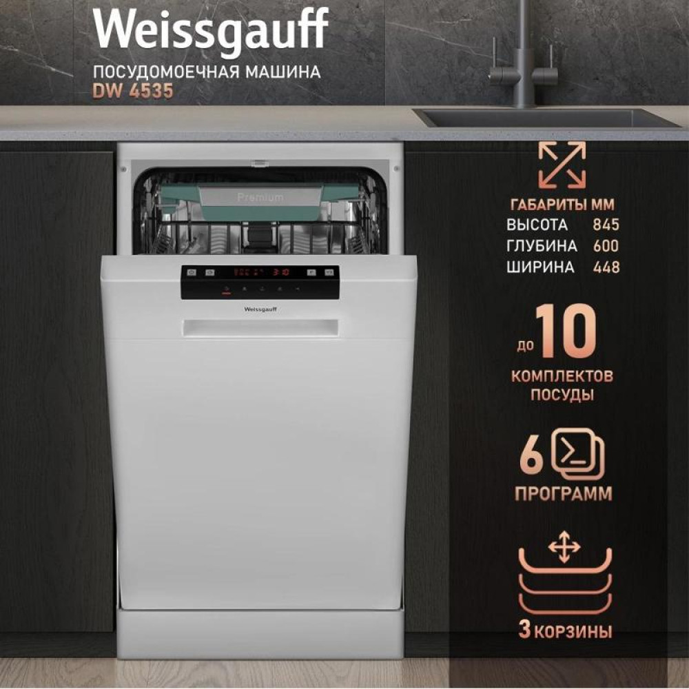 Посудомоечная машина Weissgauff DW 4535 белый (узкая)