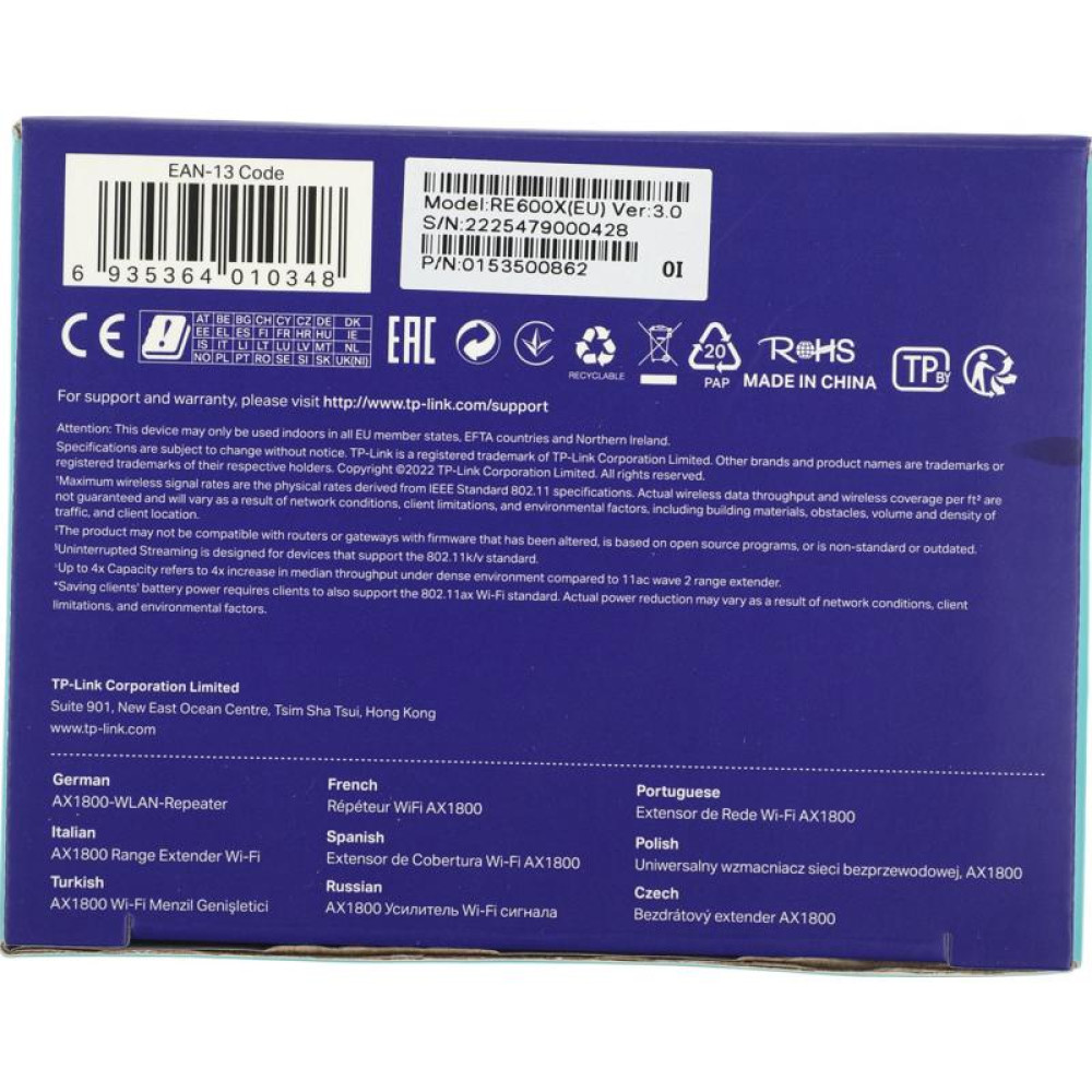 Повторитель беспроводного сигнала TP-Link RE600X AX1800 10/100/1000BASE-TX белый