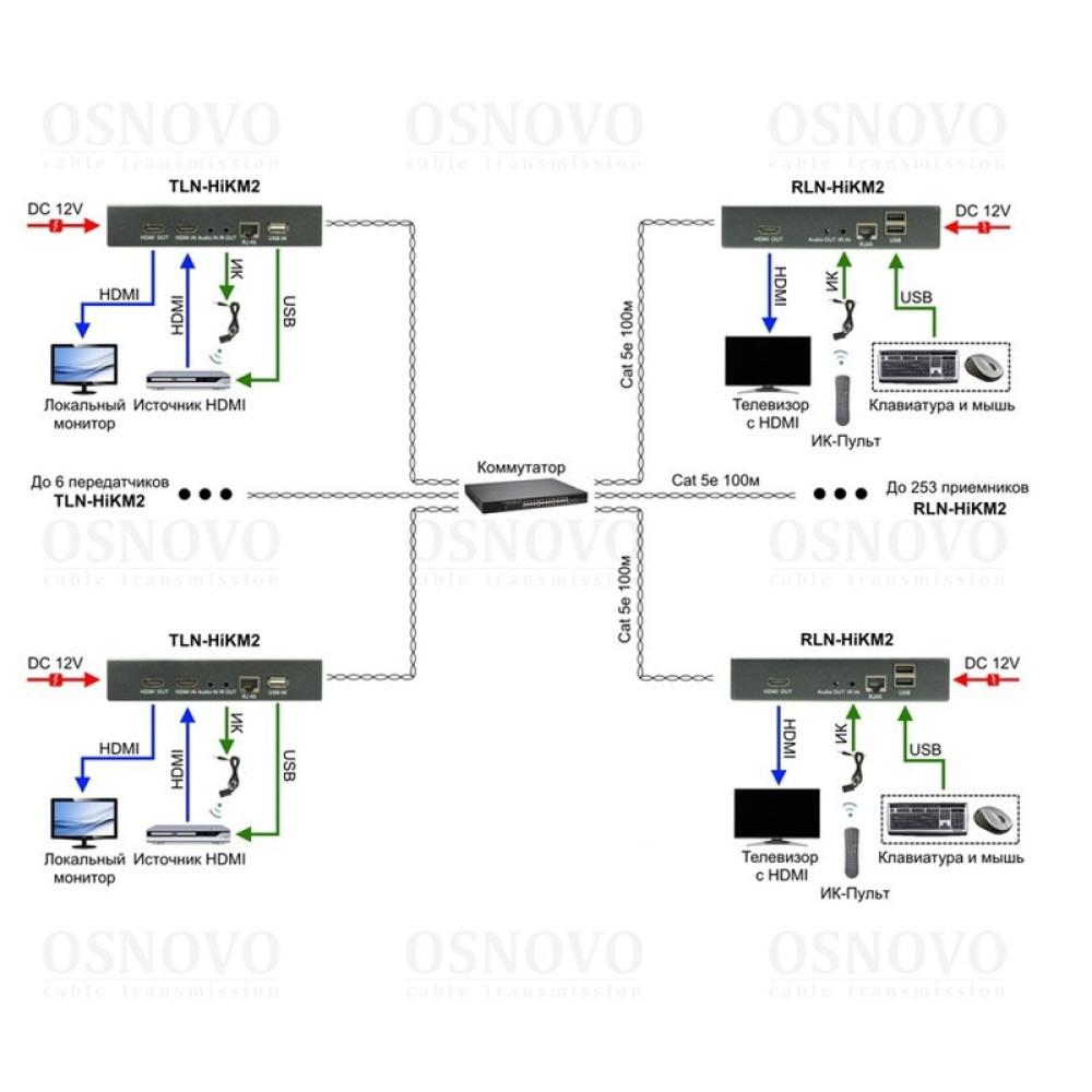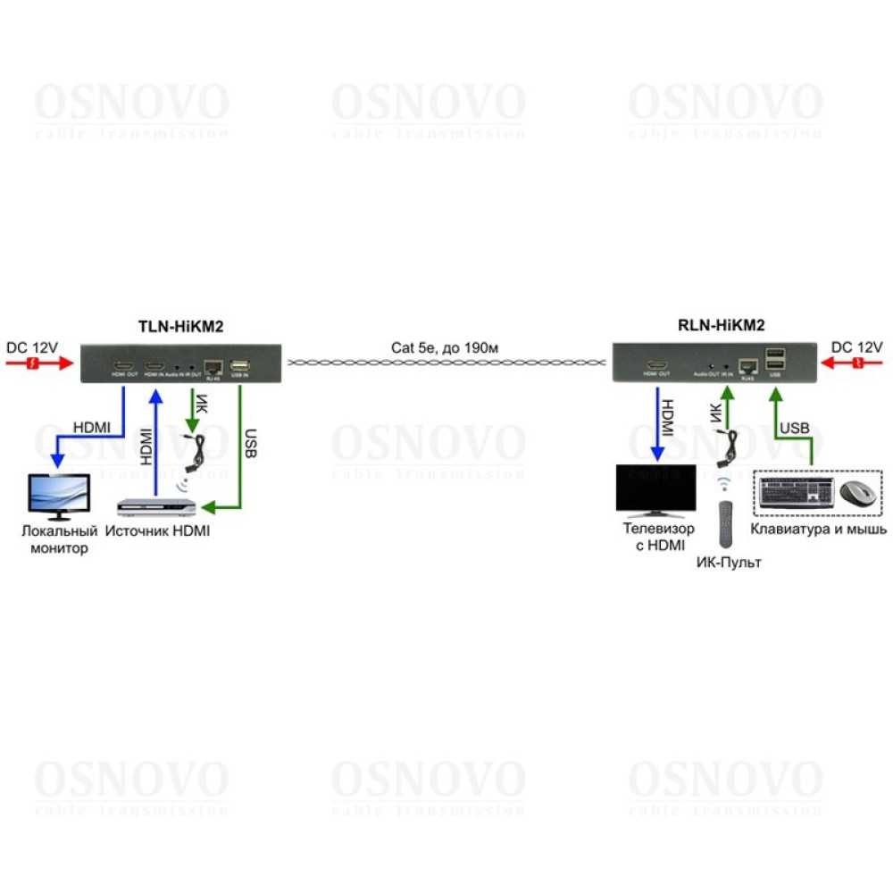OSNOVO RLN-HiKM2 — это дополнительный приёмник, предназначенный для работы в комплекте с TLN-HiKM2+RLN - HiKM2. Он позволяет передавать HDMI-сигнал по сети Ethernet в режиме Multicast — с одного источника на множество экранов, до 253 мониторов одновременно.