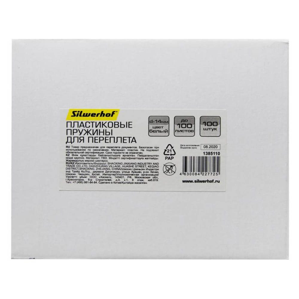 Пружины для переплета пластиковые Silwerhof d=14мм 81-100лист A4 белый (100шт) Daily