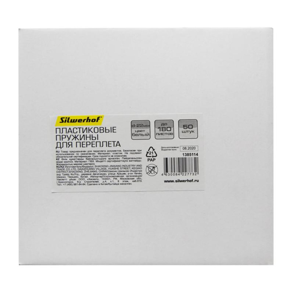 Пружины для переплета пластиковые Silwerhof d=22мм 136-180лист A4 белый (50шт) (1373589)
