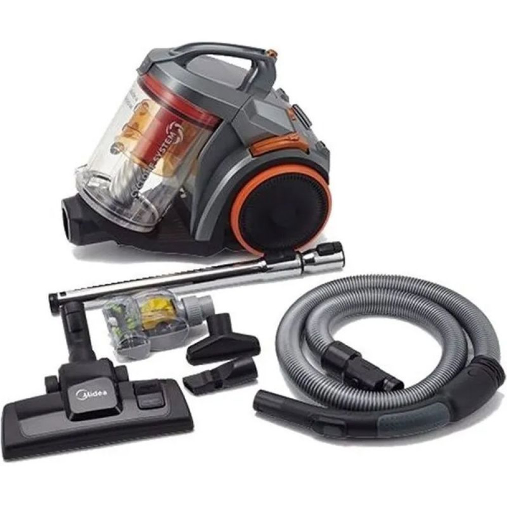 Пылесос Midea/ Пылесос Midea, мощность 2200 Вт, объем контейнера 3 л, фильтр НЕРА, щетка ковер/пол, малая турбощетка, насадка 2в1, насадка для мягкой мебели, регулировка мощности на корпусе, длина шнура 5 м, цвет оранжевый/серебристый