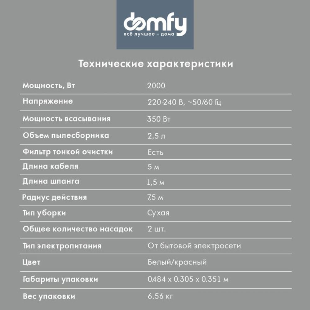 Пылесос/ Пылесос Domfy DSC-VC505 2000Вт белый/красный