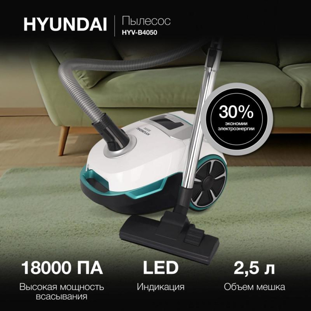 Пылесос/ Пылесос Hyundai HYV-B4050 800Вт белый/бирюзовый (в компл.:1мешок)