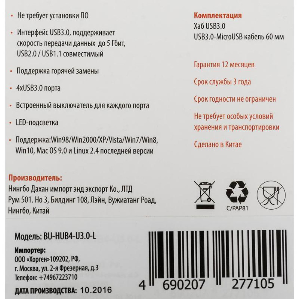 Разветвитель USB 3.0 Buro BU-HUB4-U3.0-L 4порт. черный