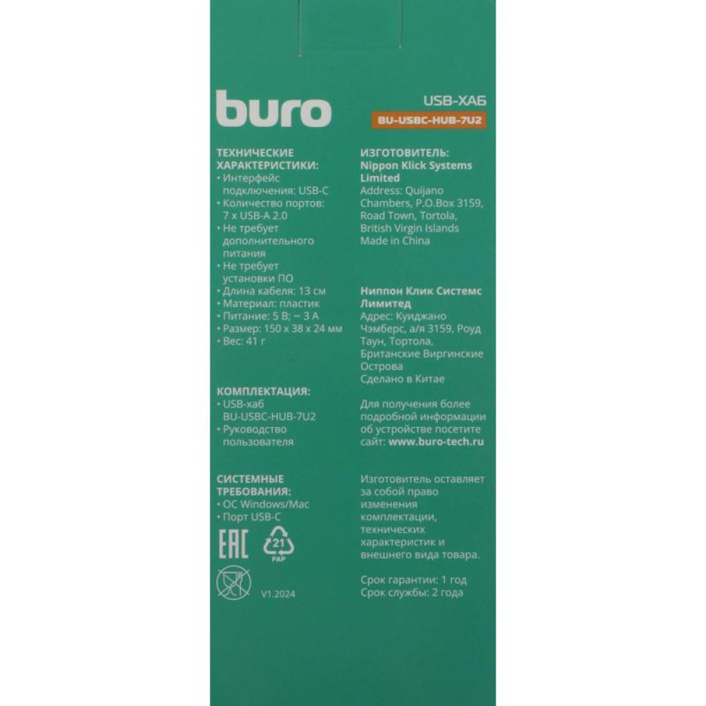 - Код товара: BU-USBC-HUB-7U2