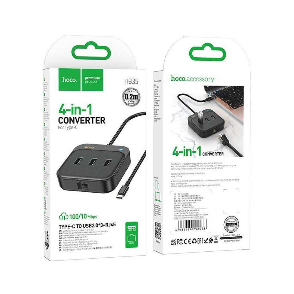 Разветвитель USB-C Hoco HB35 4порт. черный