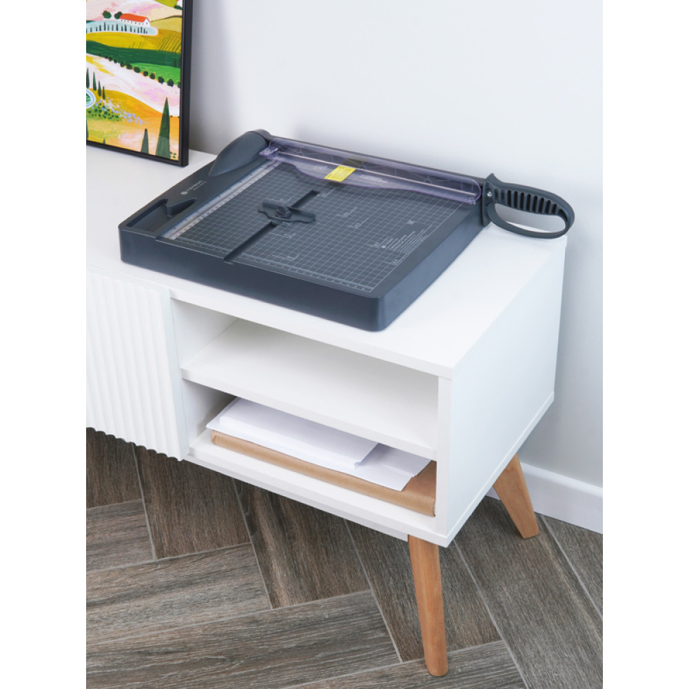 Специальная разметка и уголки позволяют быстро и точно расположить бумагу перед нарезкой, гарантируя безупречную работу независимо от размера документа — от формата A4 до B7.