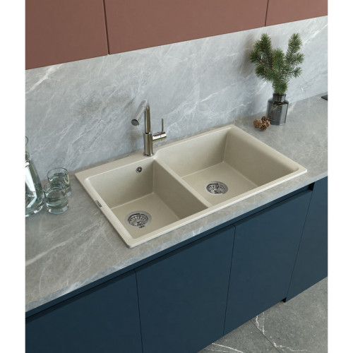 RIVELATO Мойка AXEL 90D 2-чаши 870*520мм, монтаж: врезной, материал: кварц, цвет: темно-бежевый