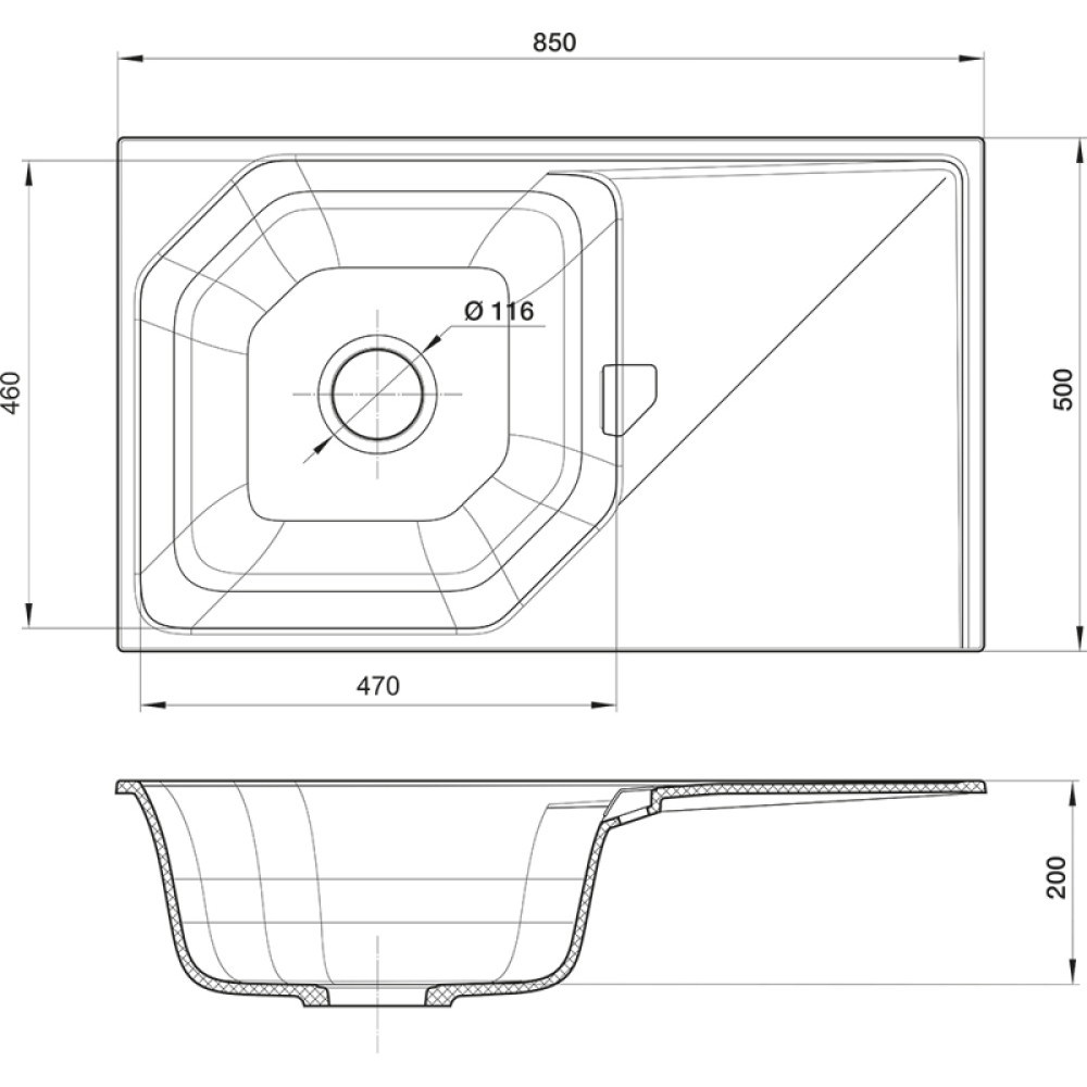RIVELATO Мойка LOCUS 85 1-чаш 850*500, монтаж: врезной, материал: кварц, цвет: темно-бежевый