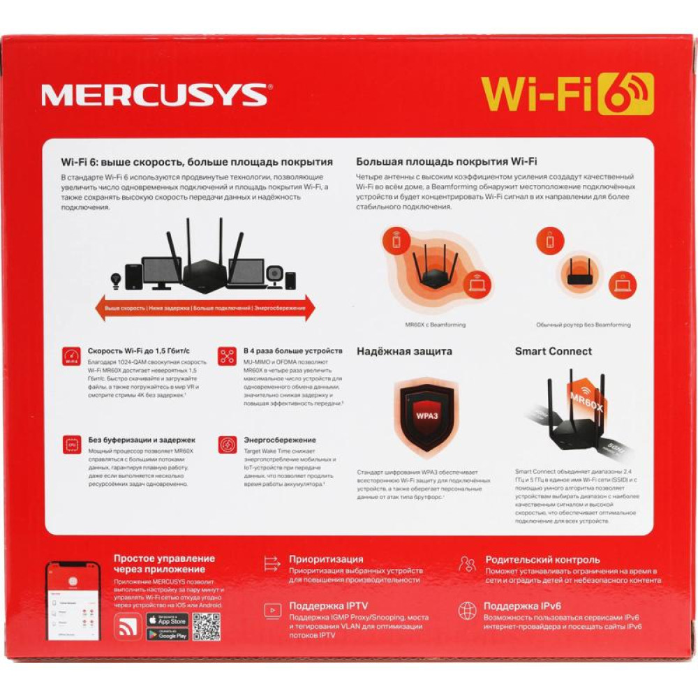 Роутер беспроводной Mercusys MR60X AX1500 10/100/1000BASE-TX черный