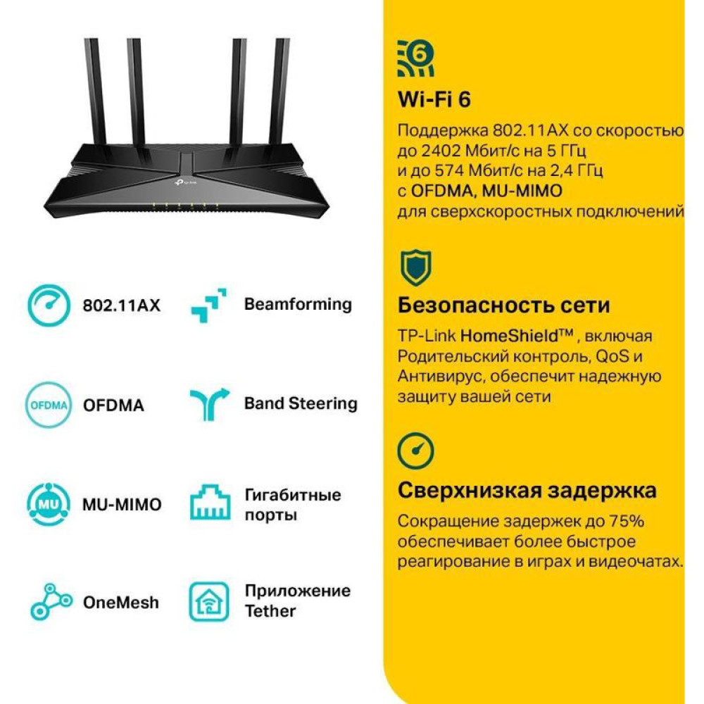 Роутер беспроводной TP-Link Archer AX53 AX3000 10/100/1000BASE-TX черный