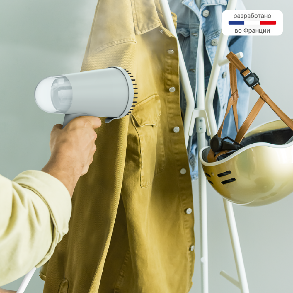 Складная ручка делает прибор особенно удобным для хранения и поездок. Лёгкий вес — около 0,75 кг — позволяет брать отпариватель с собой в дорогу без лишней нагрузки.