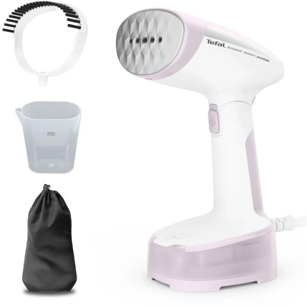 Ручной отпариватель Tefal/ Ручной отпариватель Tefal DT3050E1 Ручной отпариватель Tefal, мощность 1300 Вт, подача пара 20 г/мин, резервуар для воды 120 мл, электронное управление, вертикальное отпаривание, цвет белый/розовый