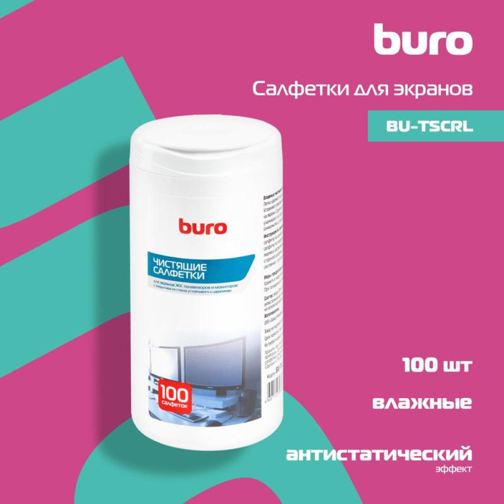 Салфетки Buro BU-Tscrl для экранов ЭЛТ мониторов/плазменных/ЖК телевизоров/мониторов с покрытием из стекла туба 100шт влажных