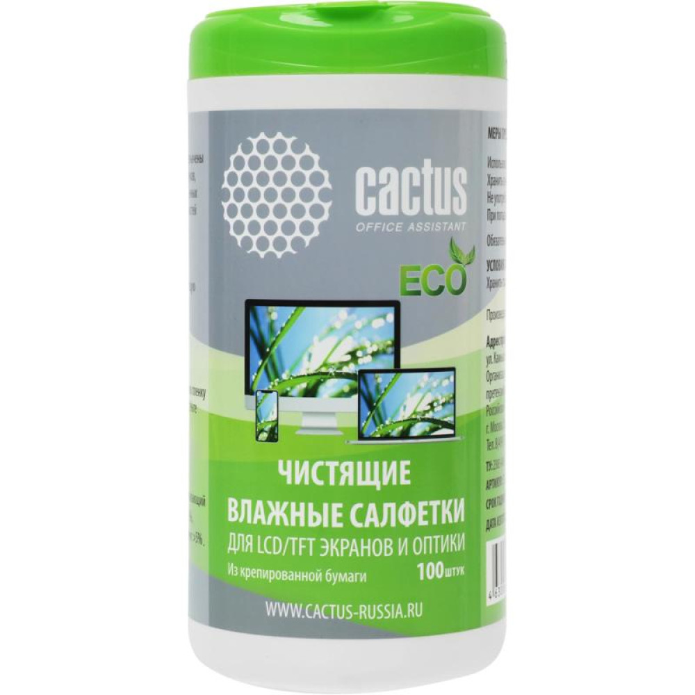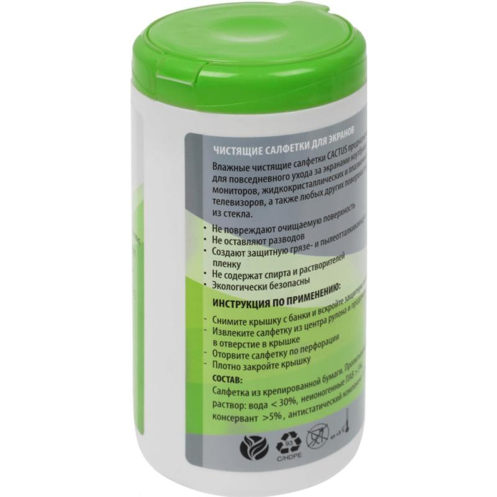 Салфетки Cactus CS-1001PE для экранов и оптики туба 100шт влажных