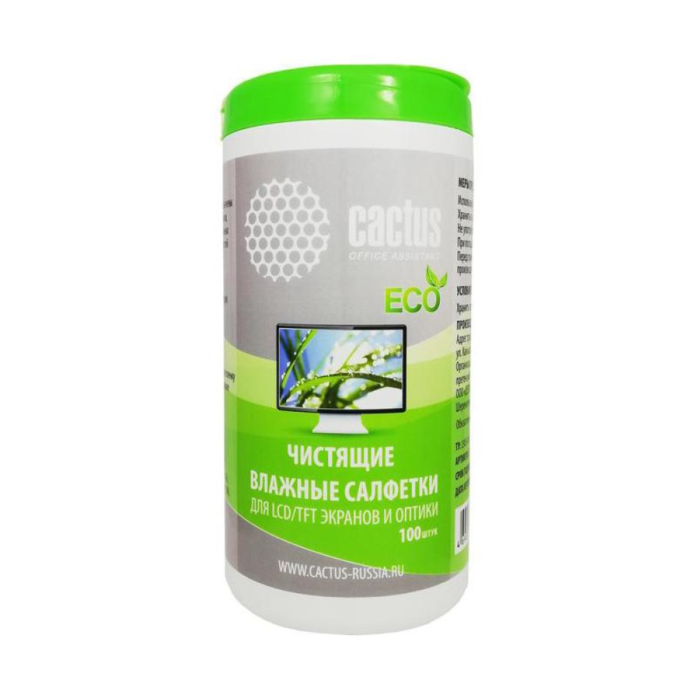 Салфетки Cactus CS-T1001E для экранов и оптики туба 100шт влажных