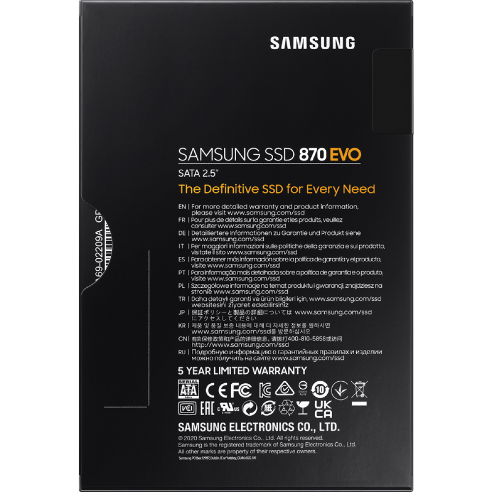Накопителю гарантирована 5-летняя гарантия на рабочий ресурс не более 2400 ТБ, что свидетельствует о том, что накопитель 870 EVO полностью отвечает промышленным стандартам по надежности. Накопитель рассчитан на выполнение самых разных задач, начиная от использования в повседневной работе до обработки 8K видео. Он оснащен VNAND и MKX контроллером 6-го поколения, что обеспечивает стабильность его работы в системах любого назначения.