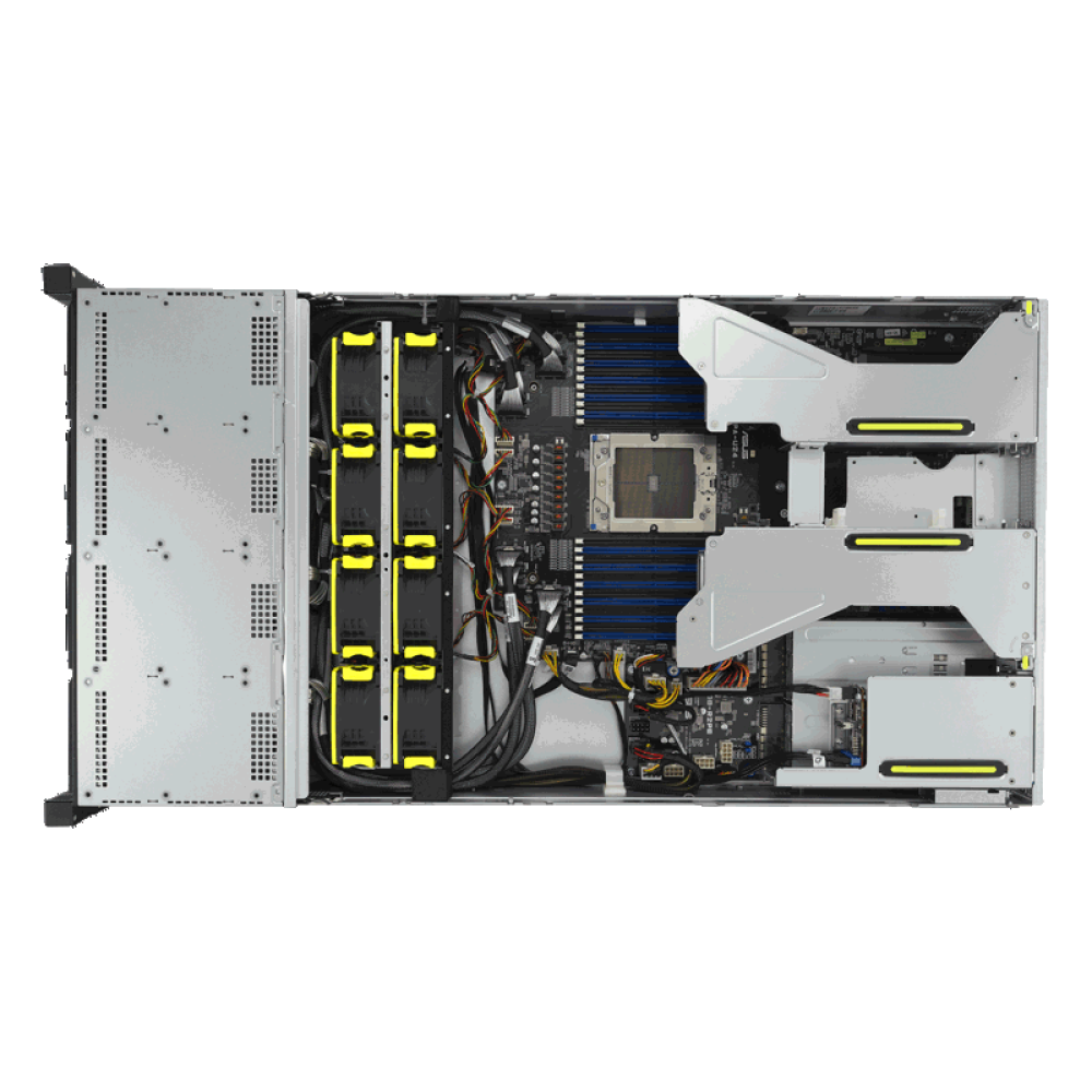 Серверная платформа/ ASUS RS521A-E12-RS12U, 2U, 1 x SP5 (LGA 6096) 4th/5th gen AMD EPYC (STD HS up to 400W), 24 x DIMM slots DDR5 (6400/5600 with 9005 series, 4800 with 9004 series), Up to 5xPCIe Gen5 + 1 OCP3.0, 12 x 3.5" hsb 12NVMe, 2x rear 2.5" SATA h
