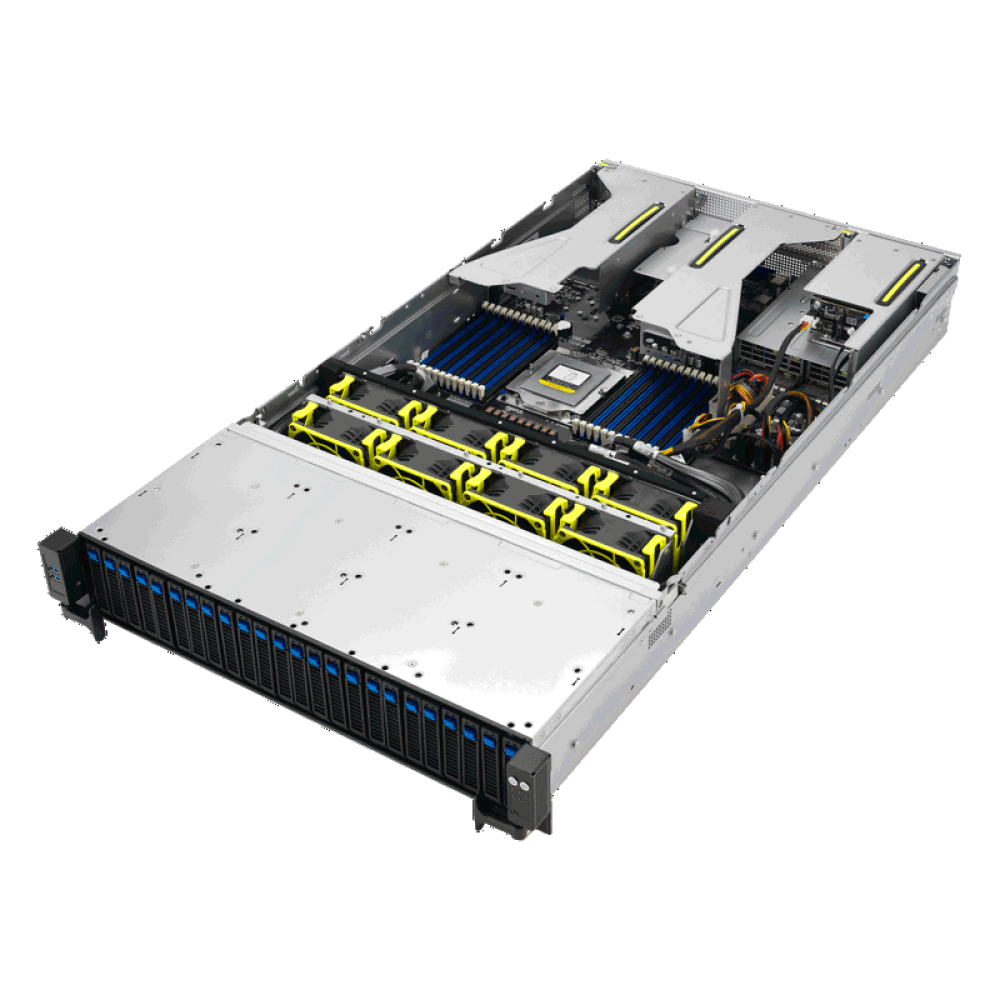 Серверная платформа/ ASUS RS521A-E12-RS24U, 2U, 1 x SP5 LGA 6096 360W, 24 x DDR5 6400/4800*, 24x 3.5'' NVMe hsb + 2x 2.5'' SATA, 2x M.2 22110, up to 1 PCIe Gen5 x8 LP + 1 OCP3.0, 2 x 1GbE RJ-45 LAN Intel i350-AM2 , 1+1 2000W