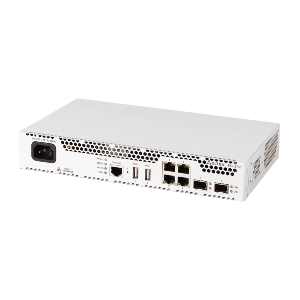 Сервисный маршрутизатор ESR-15R, 2xEthernet 1000BASE-X SFP, 4xEthernet 10/100/1000BASE-T, 2xUSB 2.0, 4 ГБ RAM, 100–264 В AC