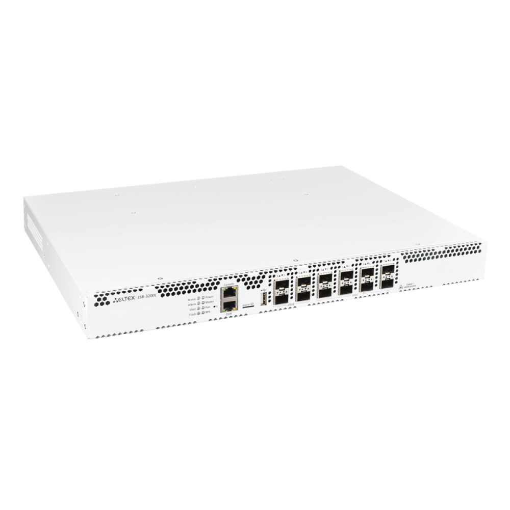 Сервисный маршрутизатор ESR-3200L, 8хEthernet 1000BASE-X/10GBASE-R, 4хEthernet 1000BASE-X/10GBASE-R/25GBASE-R, 16GB RAM, 1 слот для SD-карт, 2 слота для модулей питания