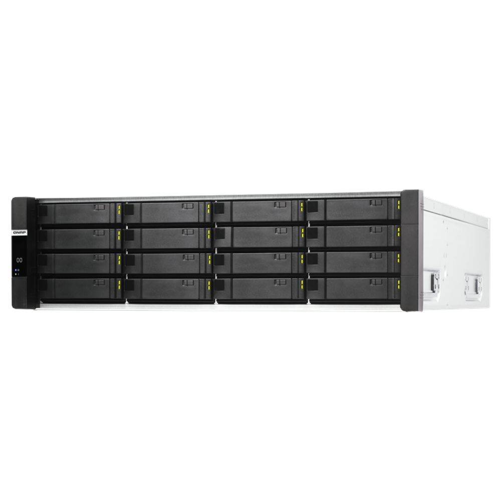 Сетевое хранилище без дисков/ Enterprise QNAP ES1686dc-2142IT-96G NAS, 16-tray SAS w/o HDD, rackmount, 2xPSU, per controller: Xeon D-2142IT 8-core 1.9 GHz processor (burst up to 3.0 GHz), 48 GB RDIMM DDR4 ECC up to 512 GB (8 x 64GB), 4xSFP+, Included rail