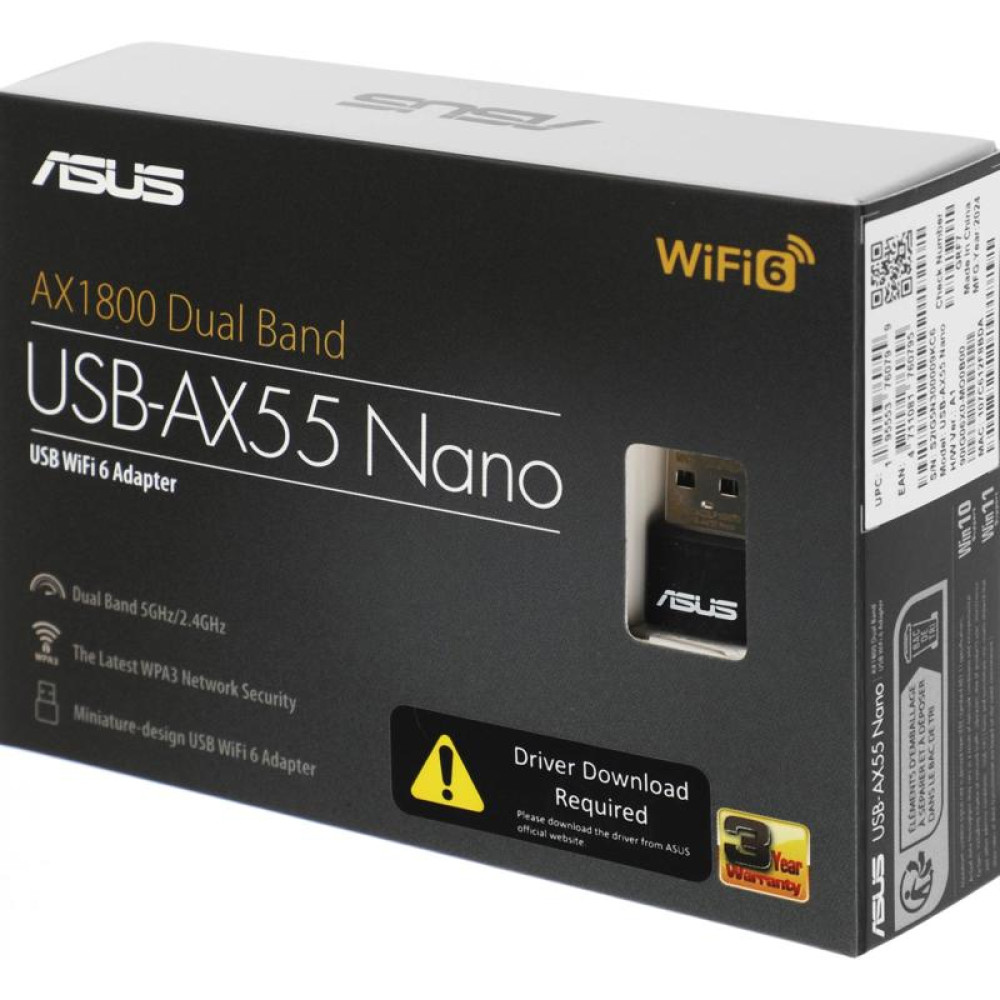 Сетевой адаптер Wi-Fi Asus USB-AX55 NANO AX1800 USB 2.0