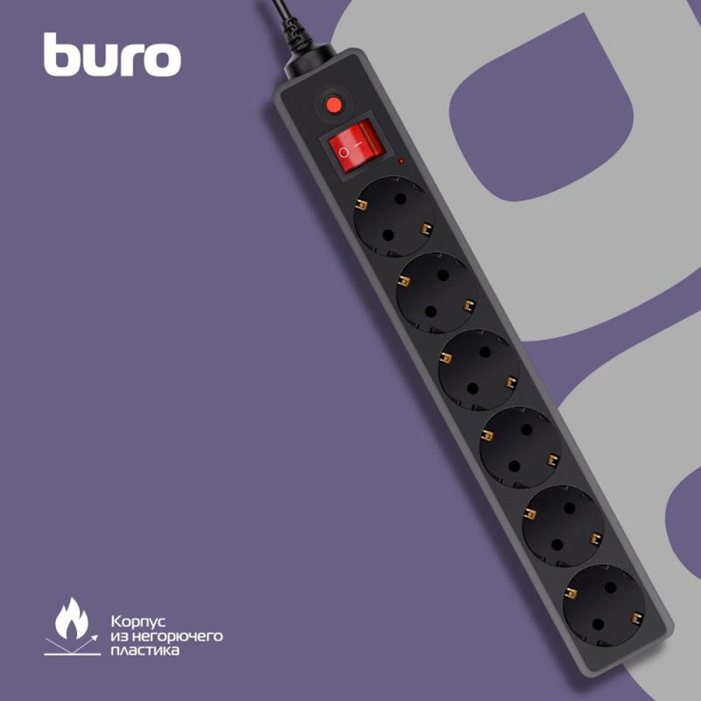 Сетевой фильтр Buro 600SH-16-5-B 5м (6 розеток) черный (коробка)