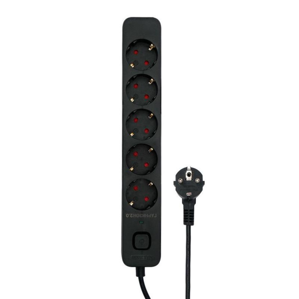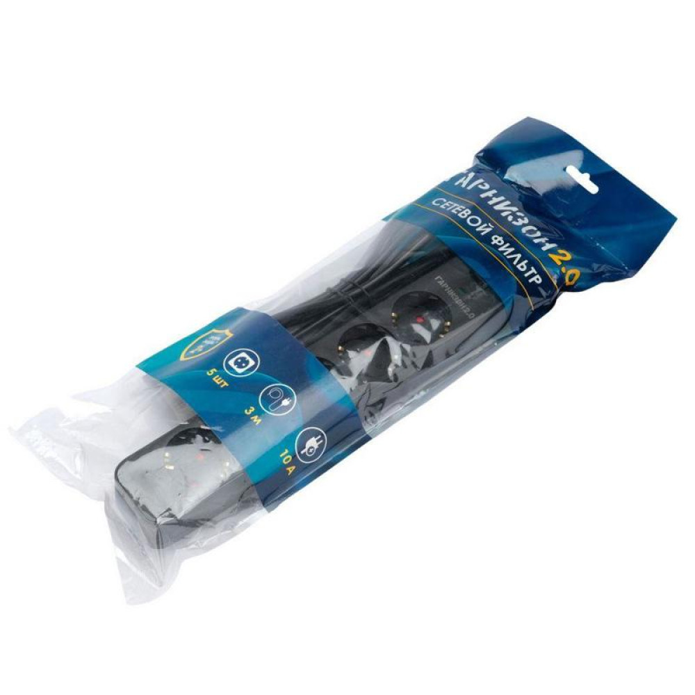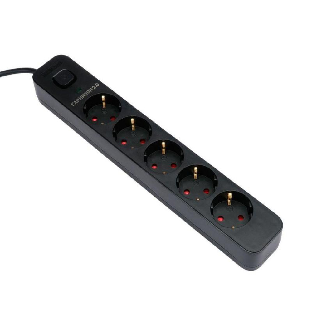 Сетевой фильтр Гарнизон EPS-5-B-3 черный, 5 розеток, 10А, кабель 3м, ур.защиты 2+, пакет
