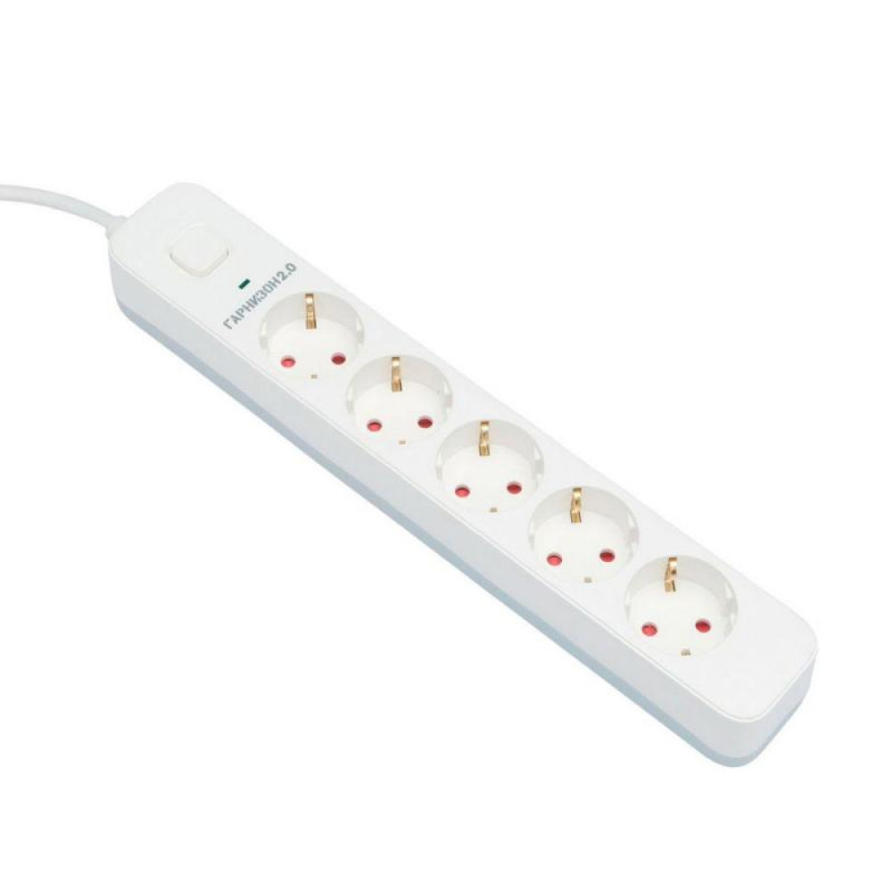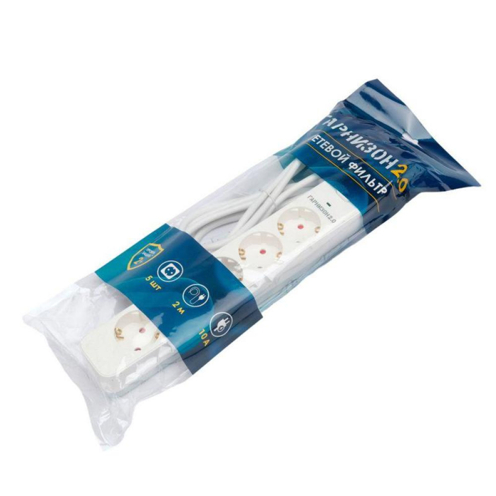 Сетевой фильтр Гарнизон EPS-5-W-2 белый, 5 розеток, 10А, кабель 2м, ур.защиты 2+, пакет