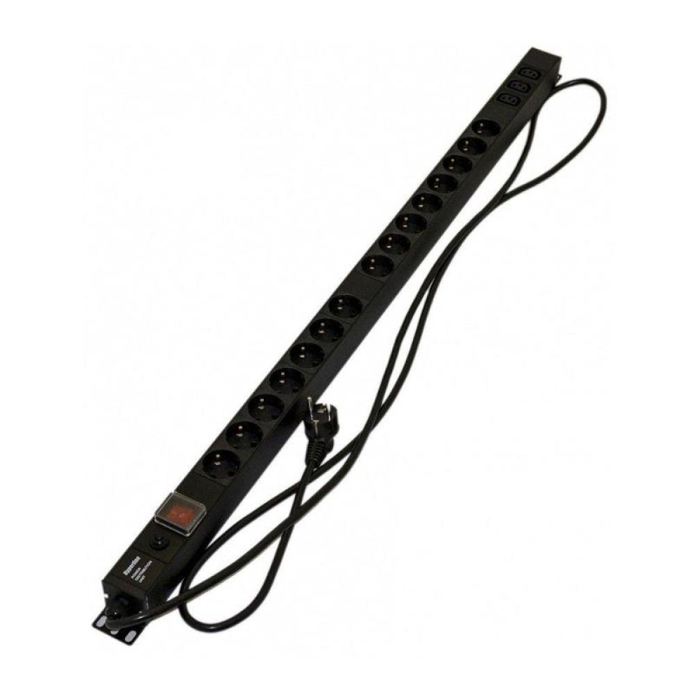 Сетевой фильтр Hyperline Hyperline SHE-15SH-3IEC-SF-2.5EU Блок розеток, вертикальный, 15 розеток Schuko, 3 розетки IEC320 C13, выключ. с подсветкой, защита от перенапряж., кабель питания 2.5м (3х1.5мм2) с вилкой Schuko 16A, 250В, 1040x44.4x44.4мм (ДхШхВ),