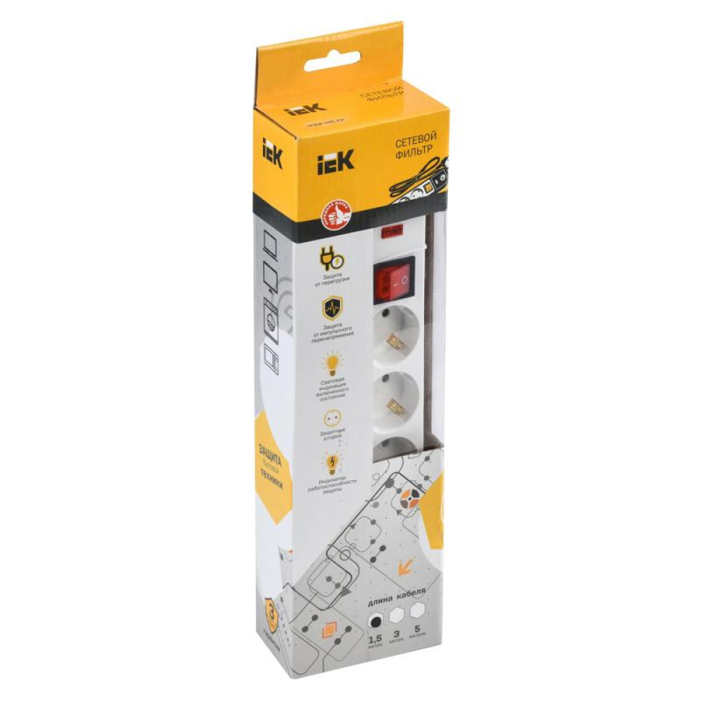 Сетевой фильтр IEK СФ-05К 1.5м (5 розеток) белый (коробка)