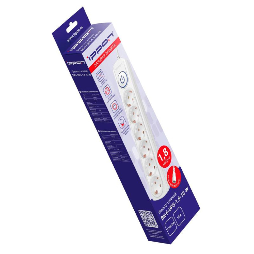 Сетевой фильтр Ippon BK-6-UPS-1.8-10-W 1.8м (6 розеток) белый (коробка)