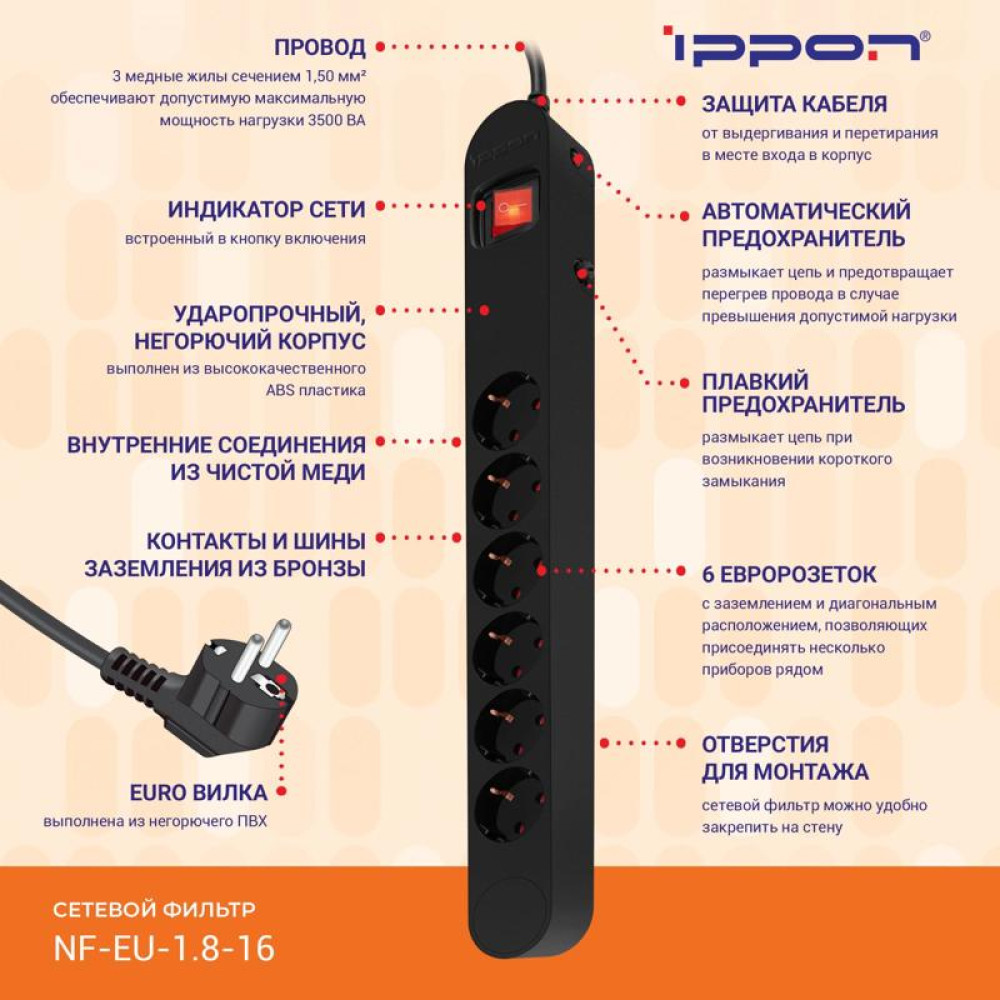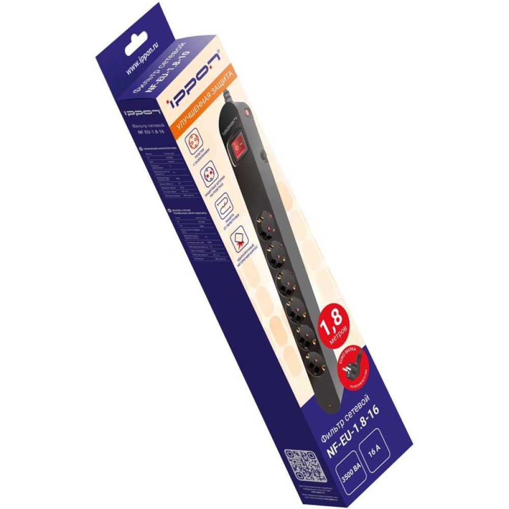 Сетевой фильтр Ippon NF-EU-1.8-16 1.8м (6 розеток) черный (коробка)