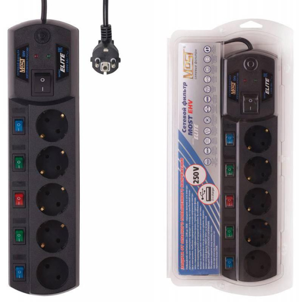 Сетевой фильтр Most EHV 5м (5 розеток) черный (коробка)