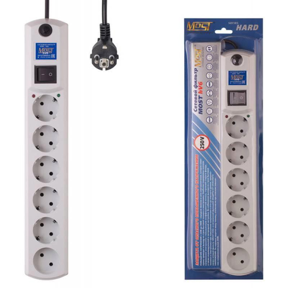 Сетевой фильтр Most HV6 2м (6 розеток) белый (коробка)